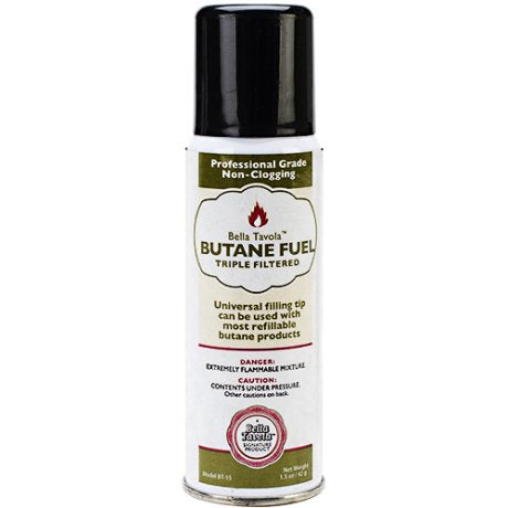 This butane fuel features a universal filling tip that can be used with most refillable butane products. The butane is double scrubbed and triple filtered for trouble free use. 1.5oz can.