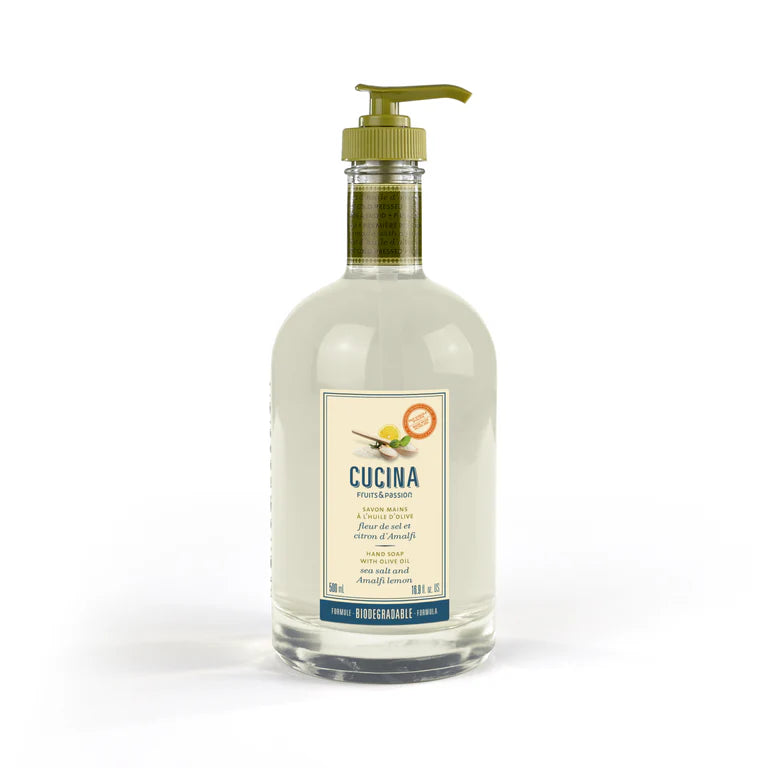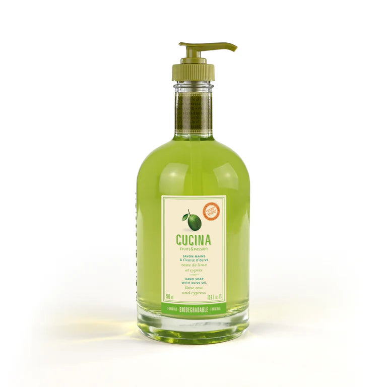 Discover our best selling fragrance of Cucina hand soap. Formulated specifically to care for hands in the kitchen, this hand soap is made with cold-pressed olive oil and plant extracts with softening and hydrating properties.