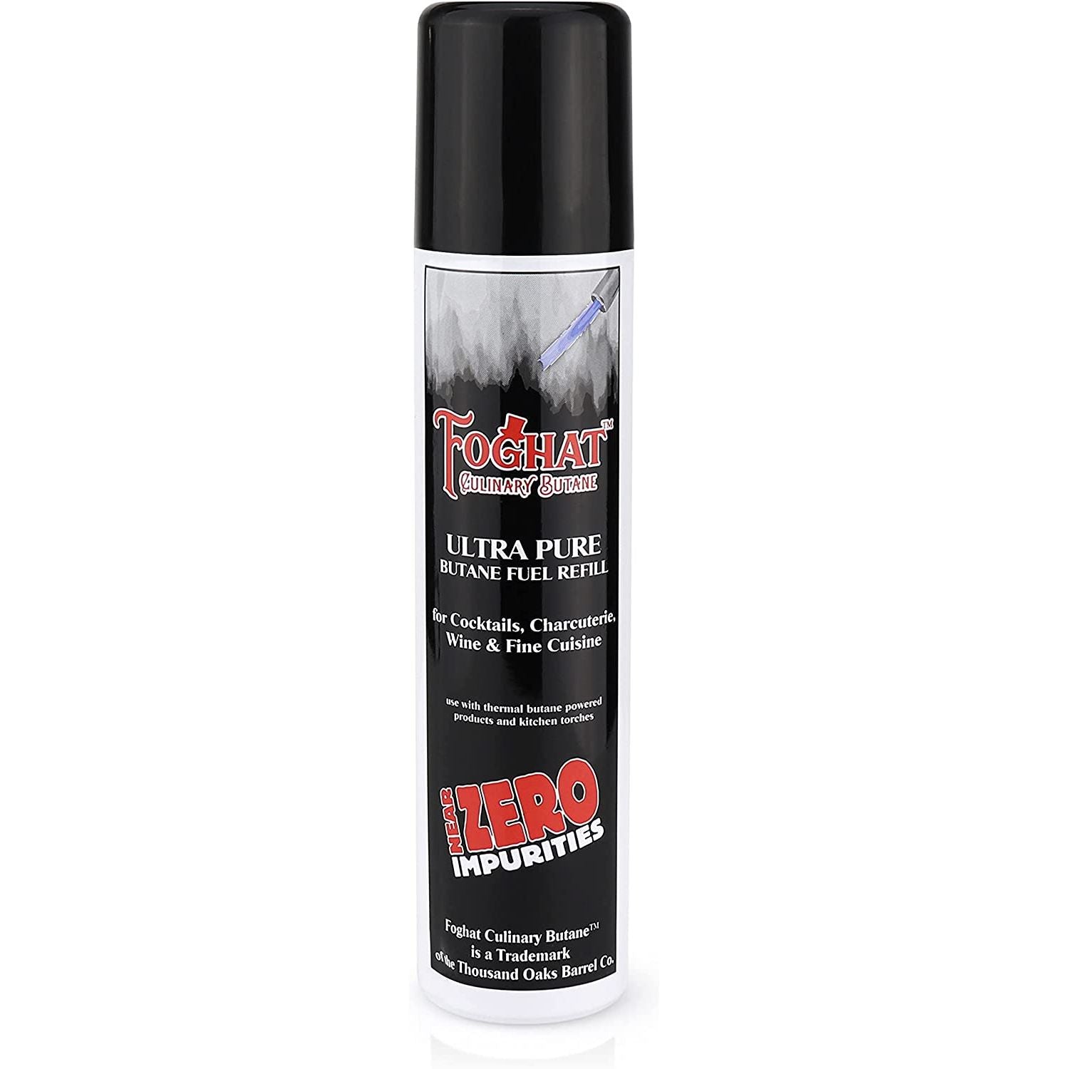 60ml can of Foghat Culinary Butane for use with the Foghat Culinary Torch or any kitchen torch. This ULTRA PURE butane is specially formulated and distilled for use with fine food and drinks. Foghat Culinary Butane has NEAR ZERO IMPURITIES making this the optimum culinary kitchen gas for cooking, cocktails, charcuterie, wine and all fine cuisine. Included is universal adapters for use on all brands of kitchen torches and lighters requiring butane.